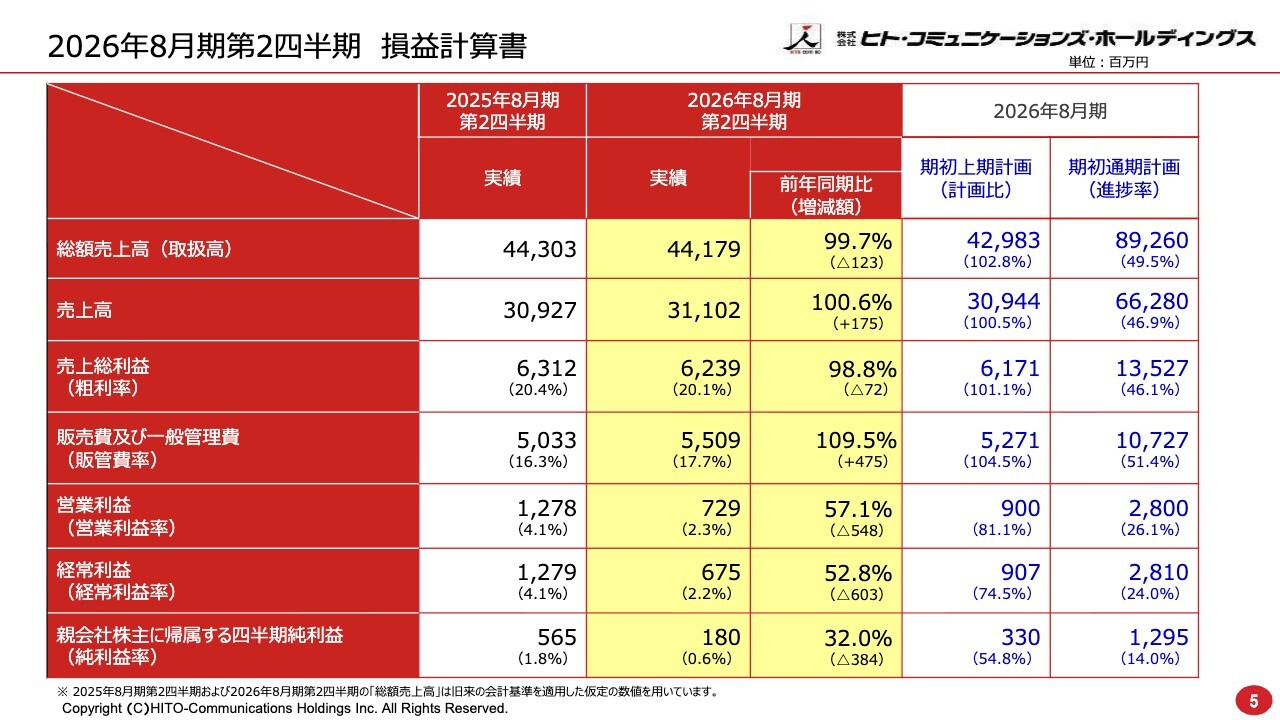 2026年8月期第2四半期 損益計算書