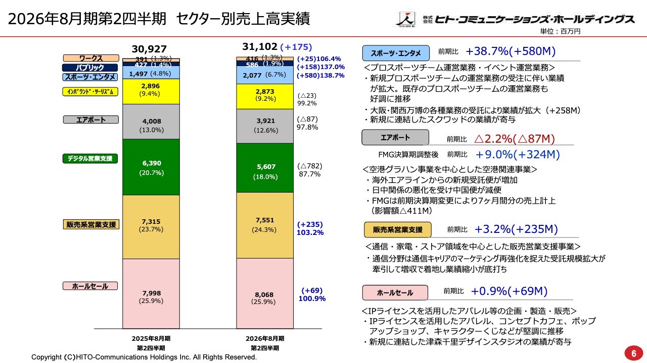2026年8月期第2四半期 セクター別売上高実績