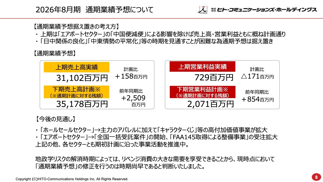 2026年8月期 通期業績予想について
