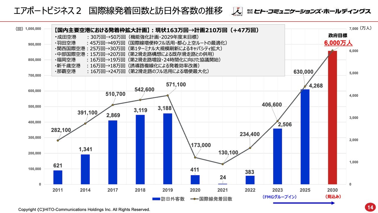 インバウンド需要の増加を見据え、現行の163万回から210万回まで増加させる計画となっています。そのため、私どものような独立系グランドハンドリング事業の活躍の場は、さらに広がると考えています。