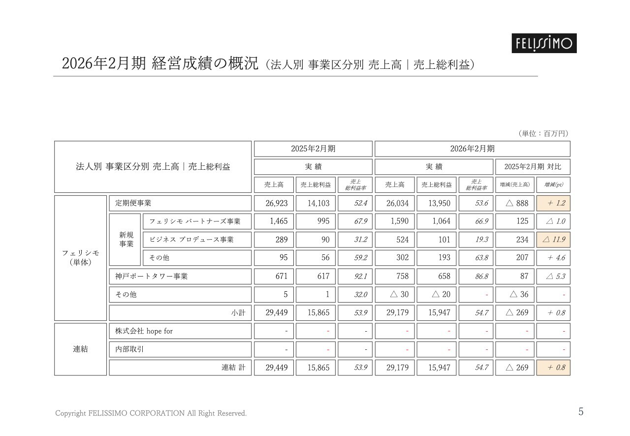 2026年2月期 経営成績の概況(法人別 事業区分別 売上高|売上総利益)