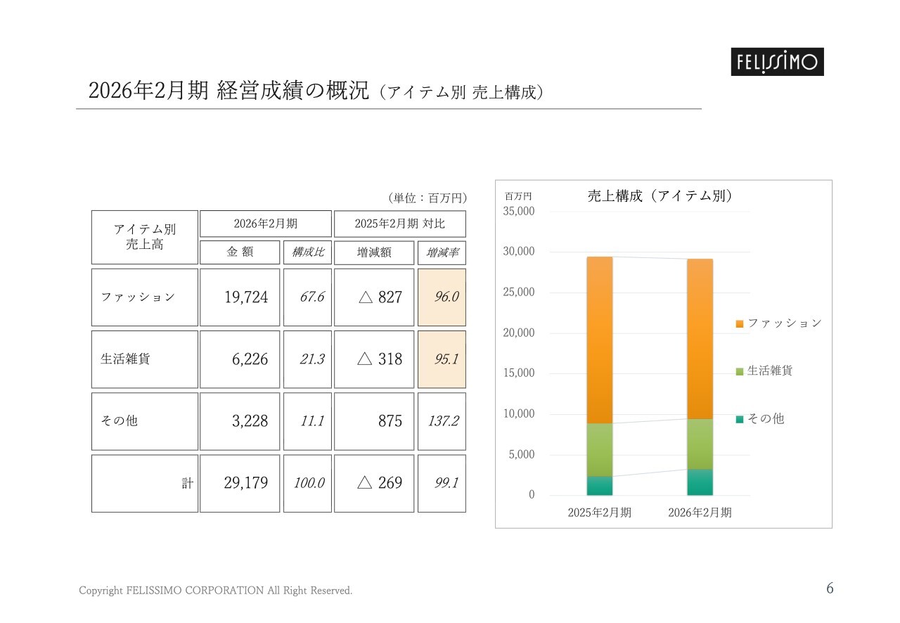 2026年2月期 経営成績の概況(アイテム別 売上構成)