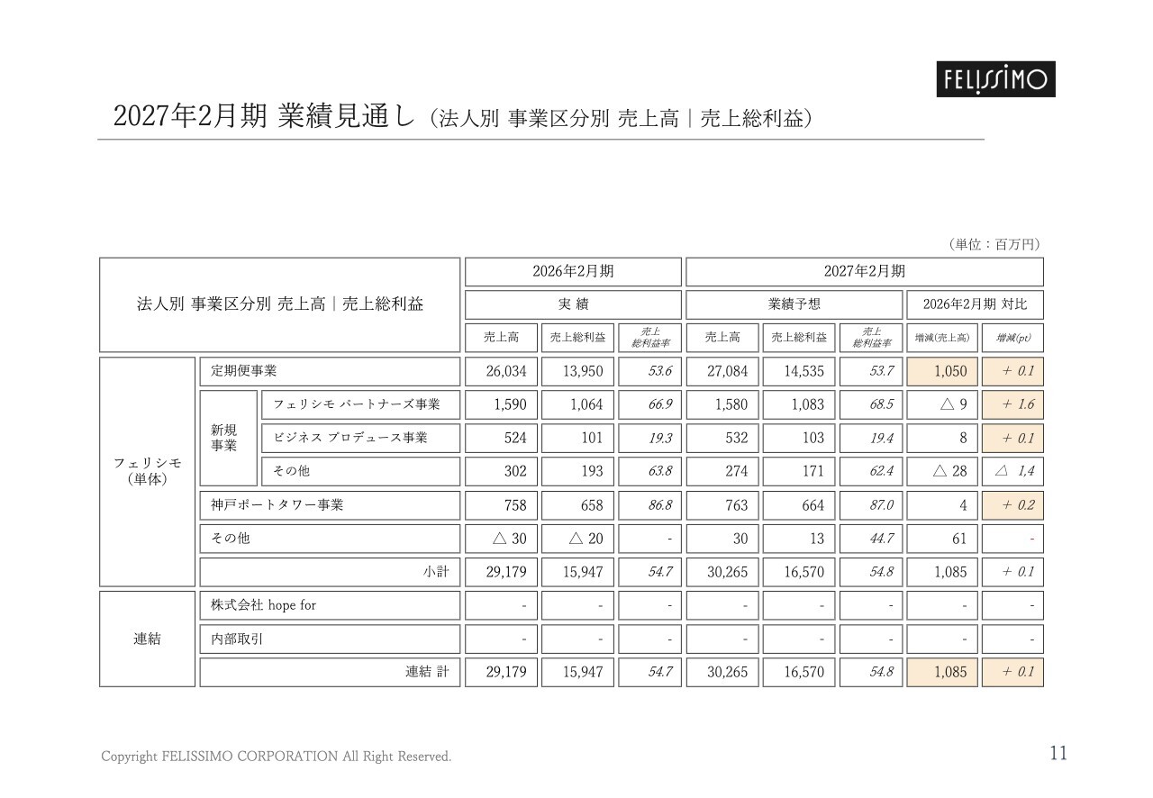2027年2月期 業績見通し(法人別 事業区分別 売上高|売上総利益)