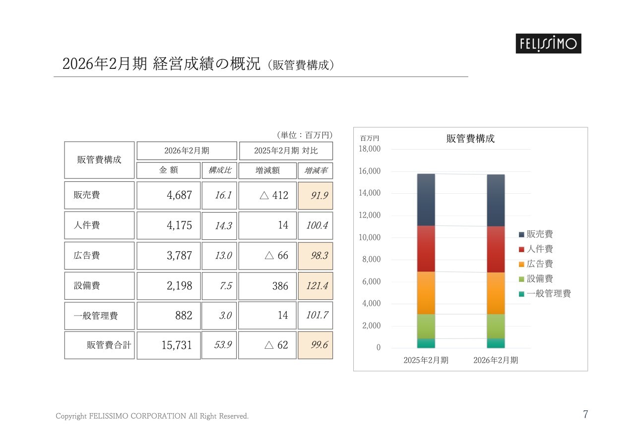2026年2月期 経営成績の概況(販管費構成)