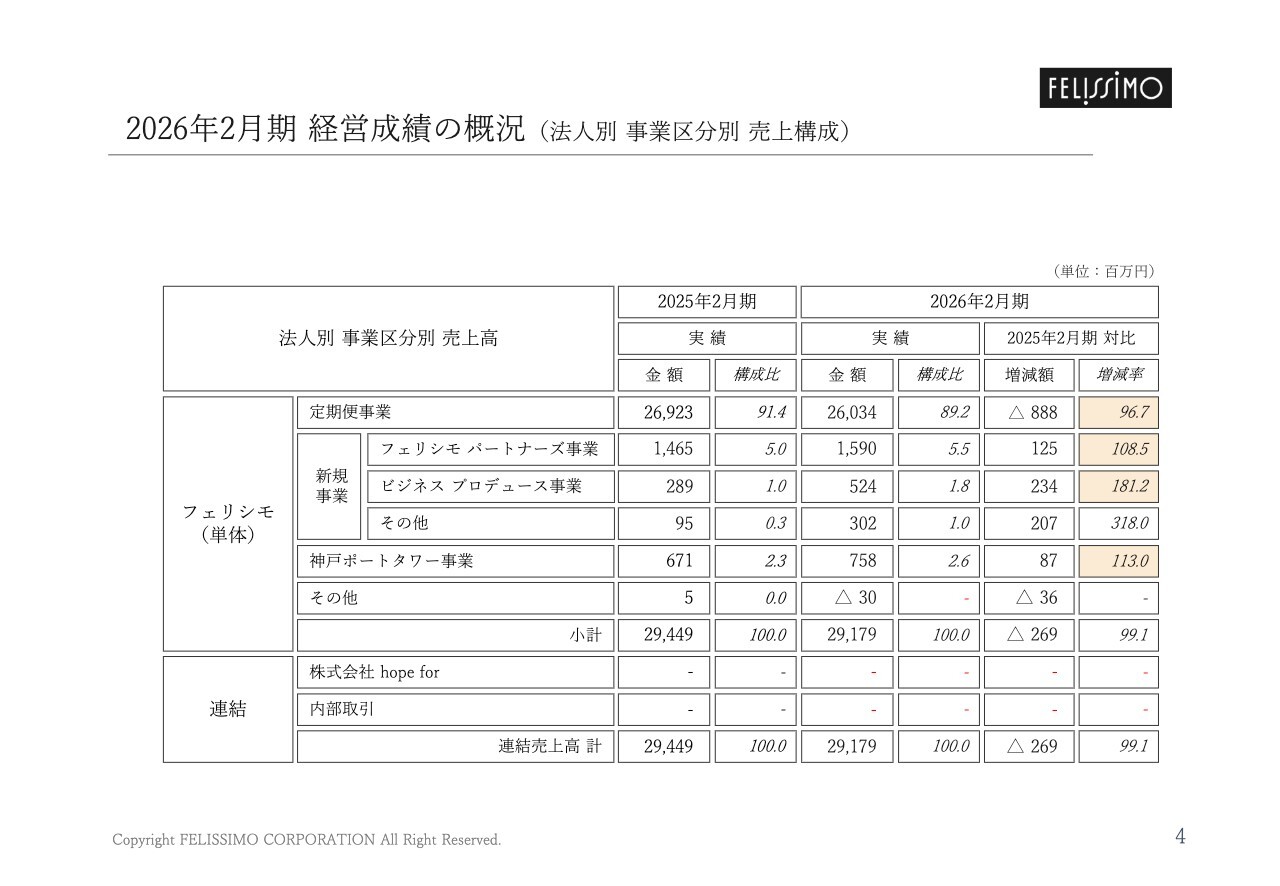 2026年2月期 経営成績の概況(法人別 事業区分別|売上構成)