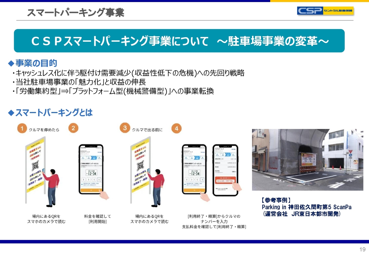 「スマートパーキング」は最近世の中に出始めたところですが、私どもも試行を開始しています。この分野に一歩踏み込んで取り組んでいきたいと考えています。