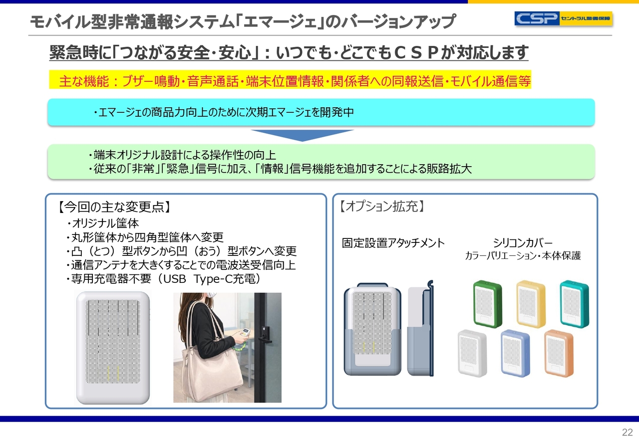 モバイル型非常通報システム「エマージェ」のバージョンアップについてご説明します。現在は「エマージェ」という緊急非常通報システムを提供しています。