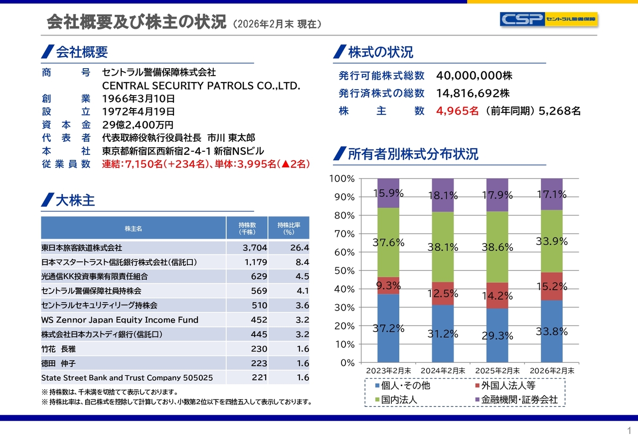 市川東太郎氏(以下、市川):おはようございます。本日はセントラル警備保障株式会社(CSP)の決算説明会をご視聴いただき、ありがとうございます。