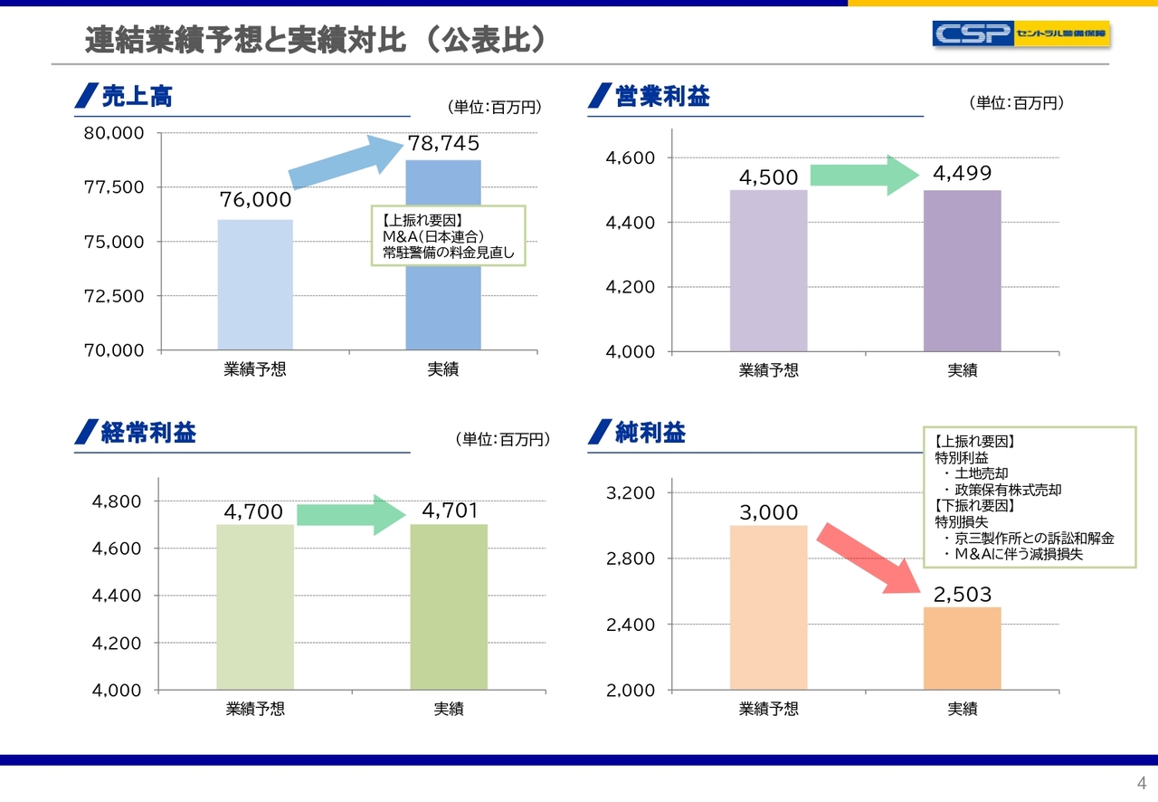 また、常駐警備の料金見直しについては、ある程度は想定していましたが、お客さまのご理解を大いにいただき、想定以上の増加となりました。