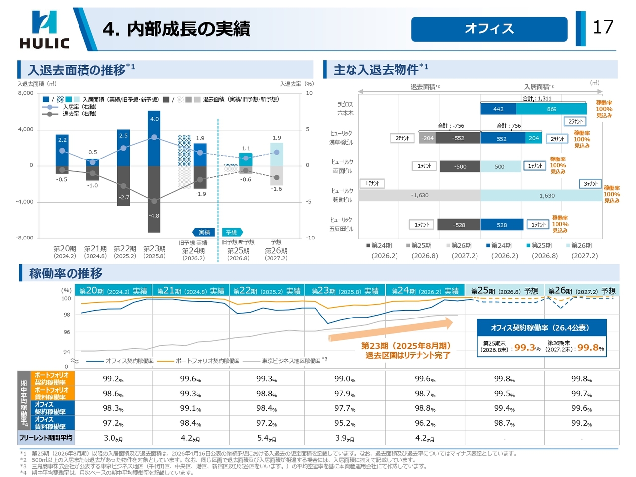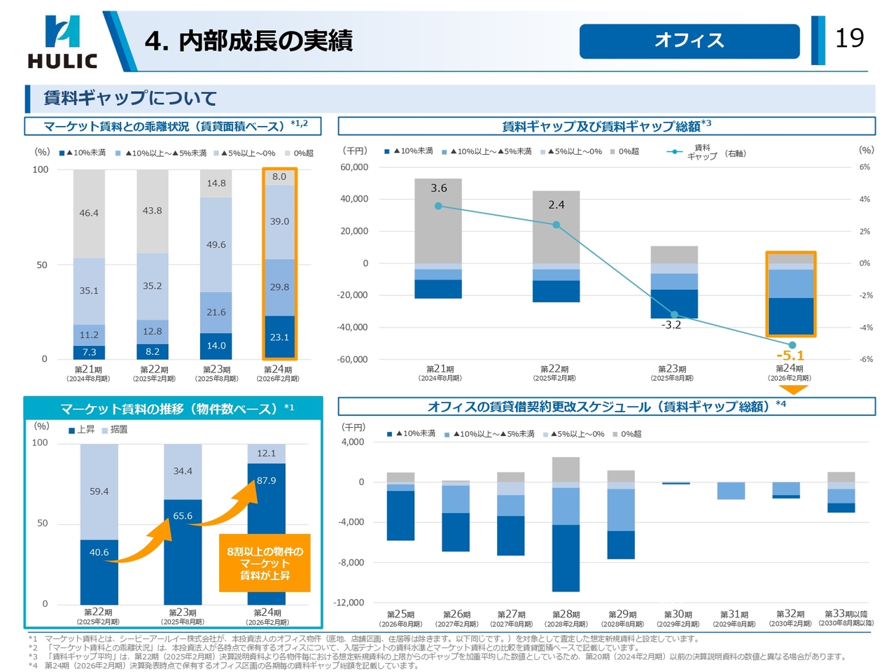 したがって、第25期(2026年8月期)を通して賃料増額率の引き上げには注力していき、第26期(2027年2月期)にかけてはさらに加速させていくことを目指していきたいです。