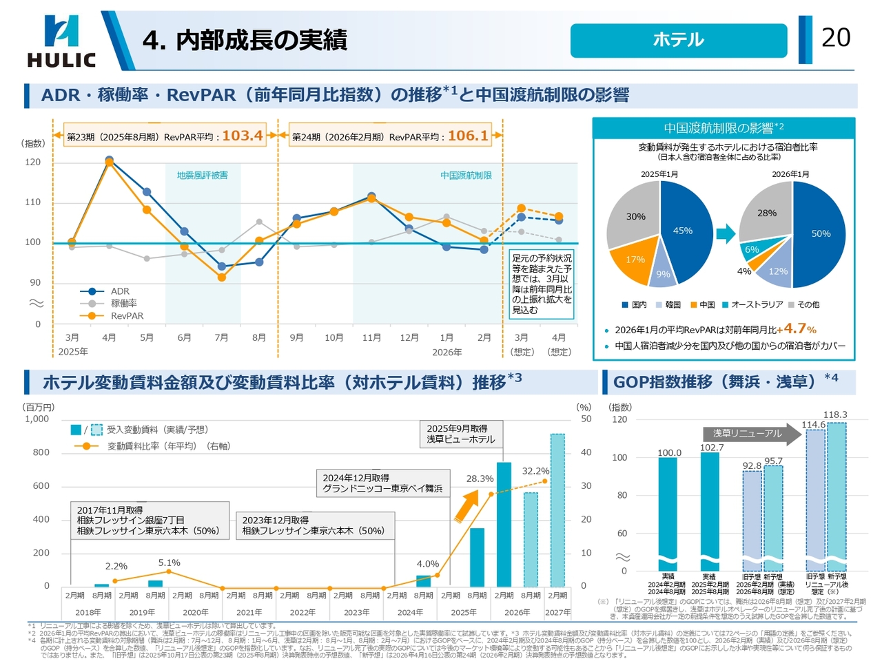 またGOP連動契約の舞浜と浅草については、浅草のリニューアル要因はありますが、2026年想定、リニューアル後の想定とも、旧予想を上回る見通しです。