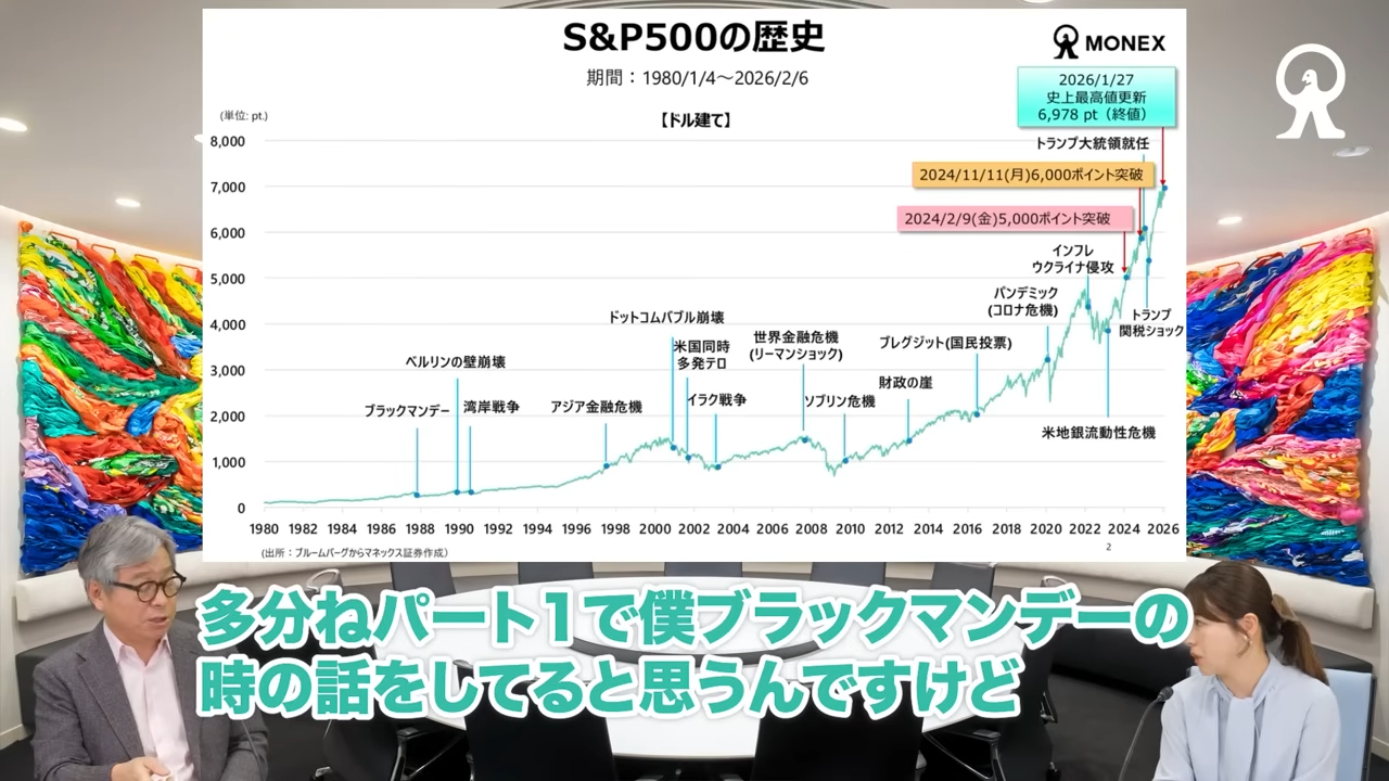 米国株投資に40年近く携わってきた岡元兵八郎氏が、S&P500の長期リターンや過去の暴落局面を振り返りながら、米国株投資の魅力と考え方を解説。ブラックマンデーやリーマンショックなどの危機を乗り越えてきた歴史、為替リスクの実態、配当の魅力、銘柄選びの視点などをもとに、長期投資における継続の重要性を語ります。(※2026年2月収録のマネックス証券YouTube動画に基づく内容です)