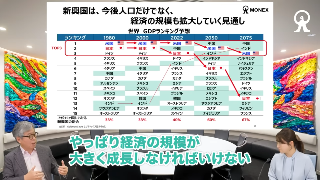 日本はすでにドイツに抜かれ、さらに米国のカリフォルニア州にも抜かれました。このように見ていくと、米国は上位にい続けています。繰り返しになりますが、先進国の中で米国経済は今後もベスト5、あるいはベスト3でい続けるだろうと予想されています。
