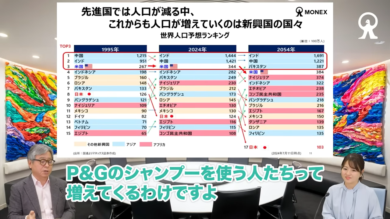 岡元:具体的にどのような国の人口が増えていくかというと、インド、中国、米国などです。そして、2054年の予想を見ても、インド、中国、パキスタンといった新興国がある中で、米国が先進国の中で一番人口が増えていく傾向にあります。トランプ氏は移民に厳しいですが、お金持ちには米国に来てほしい考えかと思います。