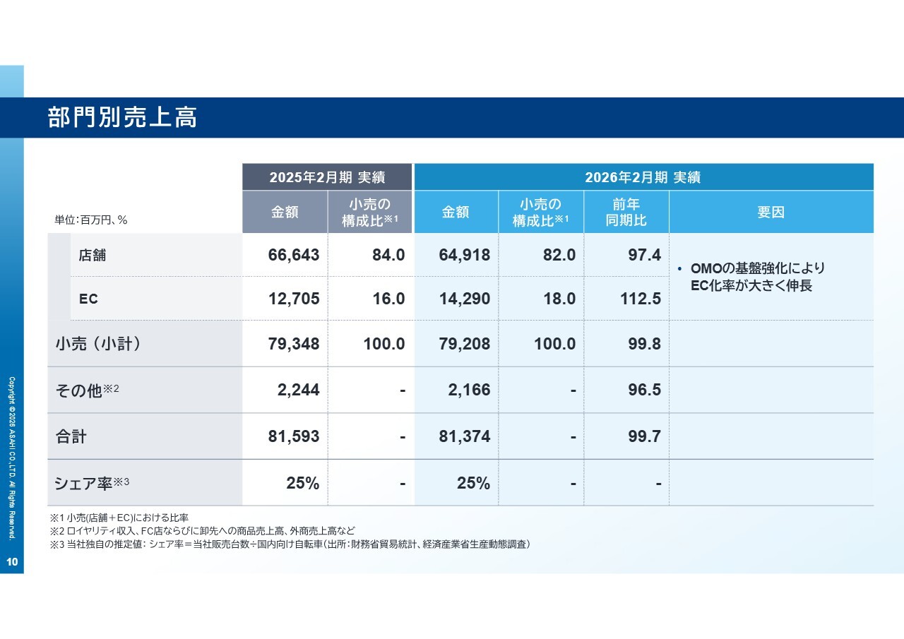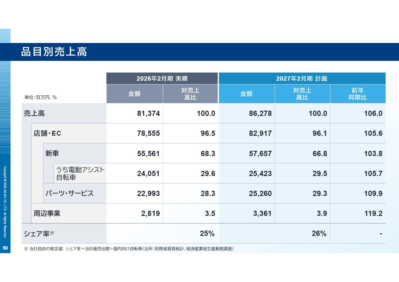 また、引き続き都市型店舗の出店やECサイトの拡充、買い物環境の利便性向上といったOMOの推進を通じて顧客体験価値の向上を図るとともに、あさひブランド商品の製造コストの低減や価格是正を進めていきます。