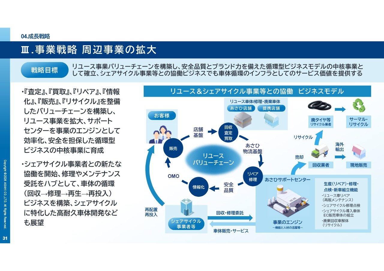 特に、リユース事業や戦略パートナー拡大による周辺事業は、循環型ビジネスの中核としてしっかりと育成していきます。