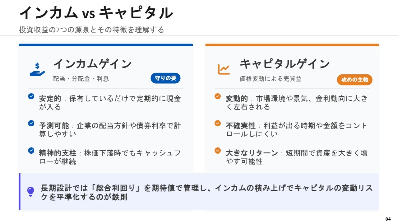 「インカムvsキャピタル」についてです。