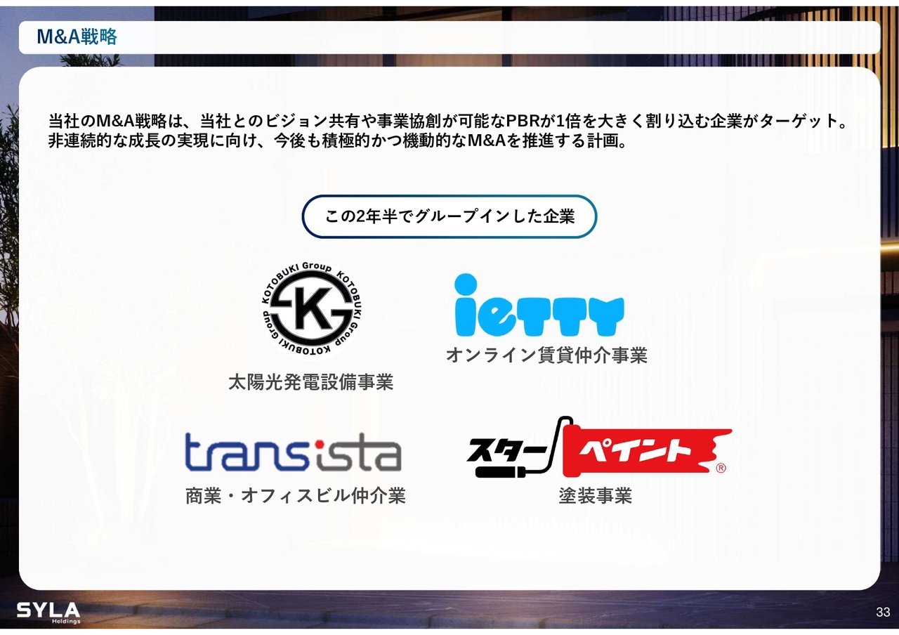 PBR(株価純資産倍率)が1倍を割り込んでいる状況には課題がありふがいなさを感じていますが、これをしっかり是正していく必要があると考えています。株価が上昇した際には、株式交換によるM&Aや機関投資家からの問い合わせへの対応も増加しており、それに備える意味もあります。