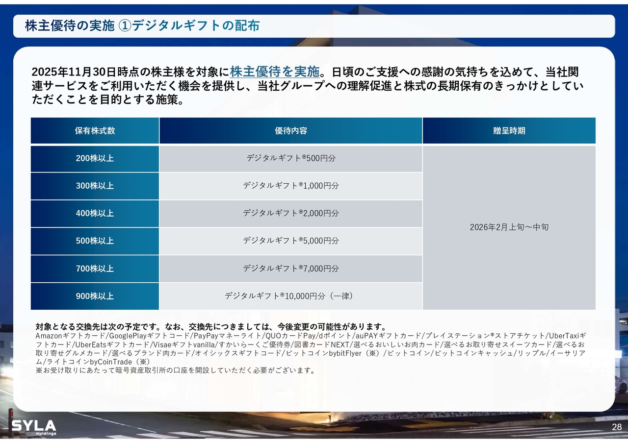 株主優待の実施 ①デジタルギフトの配布