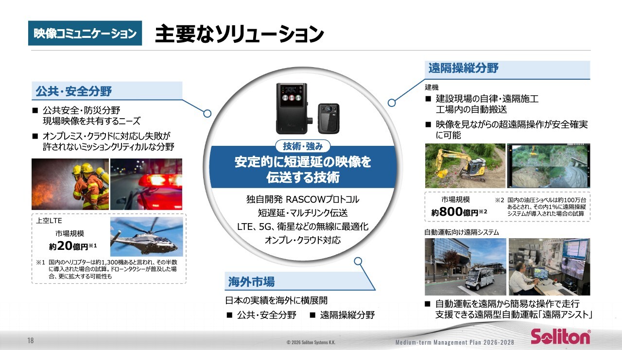 また、映像コミュニケーション事業については、遠隔操縦を中心にすでに多くの引き合いをいただいています。今後は、これらを着実に案件化するとともに、用途や顧客層の裾野を広げていくことで、段階的な成長を図っていきたいと考えています。