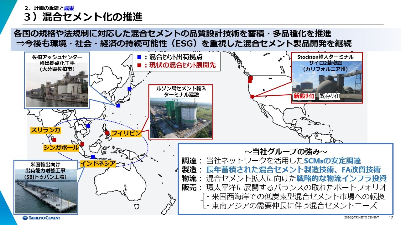 こちらは、2点目の強調したいところです。混合セメント化の推進として、当社は過去数年にわたり、環太平洋や米国市場を含めたサプライチェーンを構築してきました。