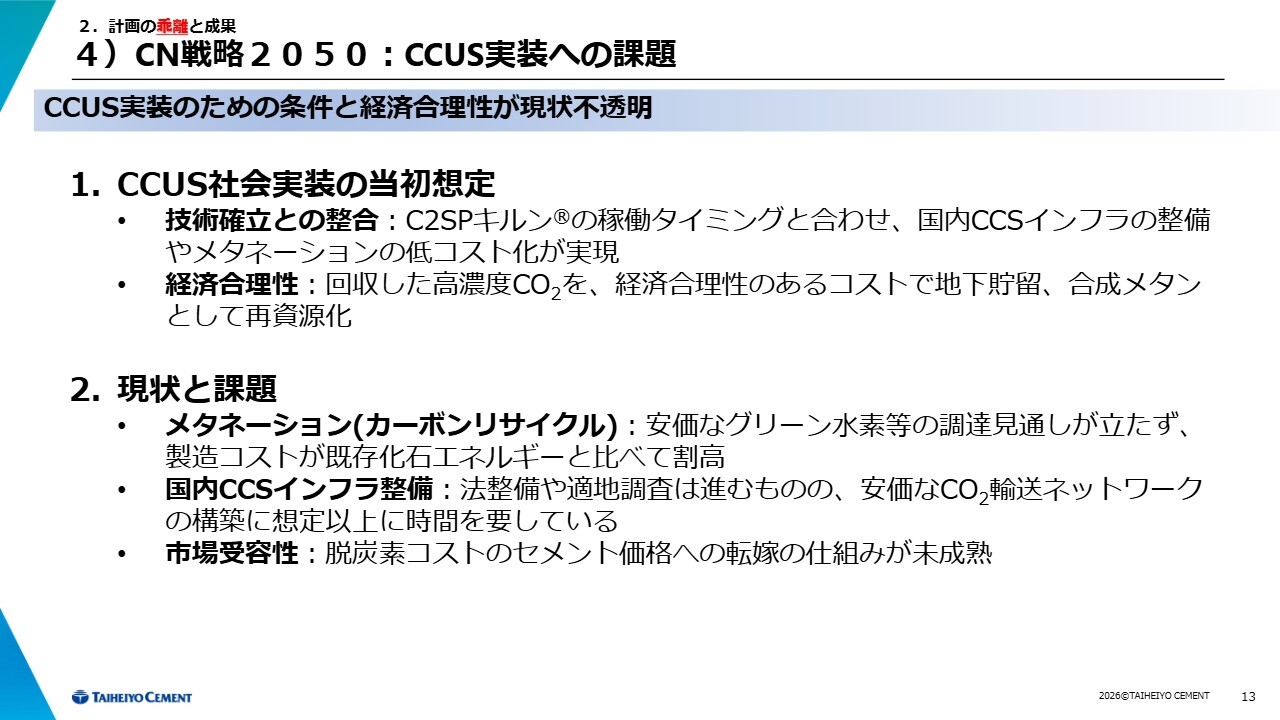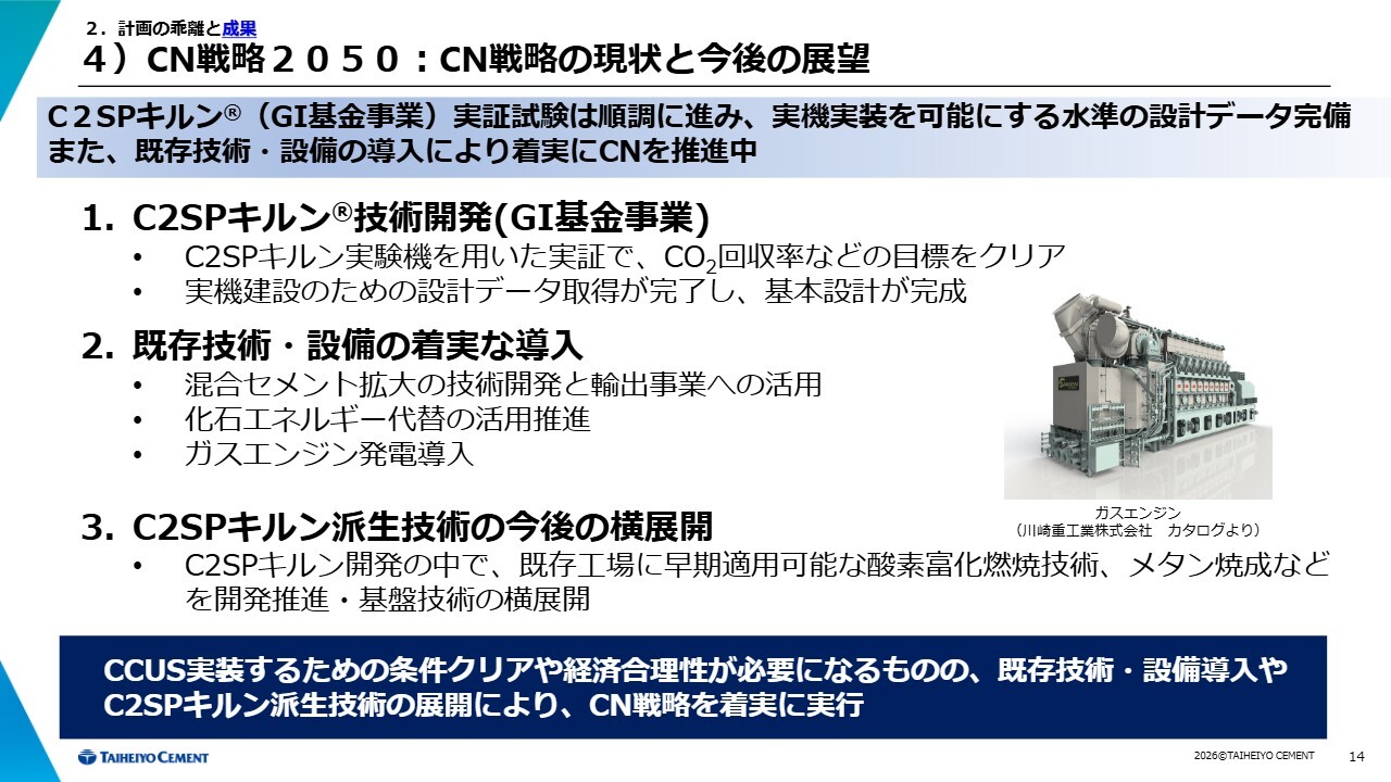 外部環境が不明瞭な中で、当社は現在やるべきことを着実に実行しています。「C2SPキルン」については、補足資料として別紙に記載しています。これは、仮焼炉というプロセスの中でCO2を回収するもので、当社が技術開発しました。