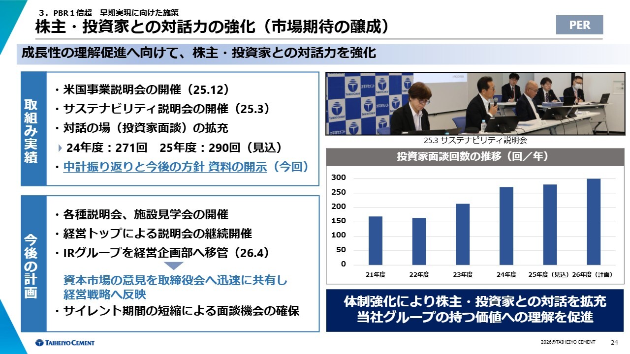 太平洋セメント、PBR1倍超の早期実現へ 26中計を総括し今後の取り組みを明示