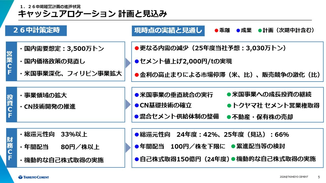 2026年中期経営計画の3ヶ年のうち2ヶ年が終了しましたので、本日はこの2年を振り返り、どのような事象が起こったのか、そして最後の1年において太平洋セメントが何を考え、どのように経営を進めていくのかをご説明します。