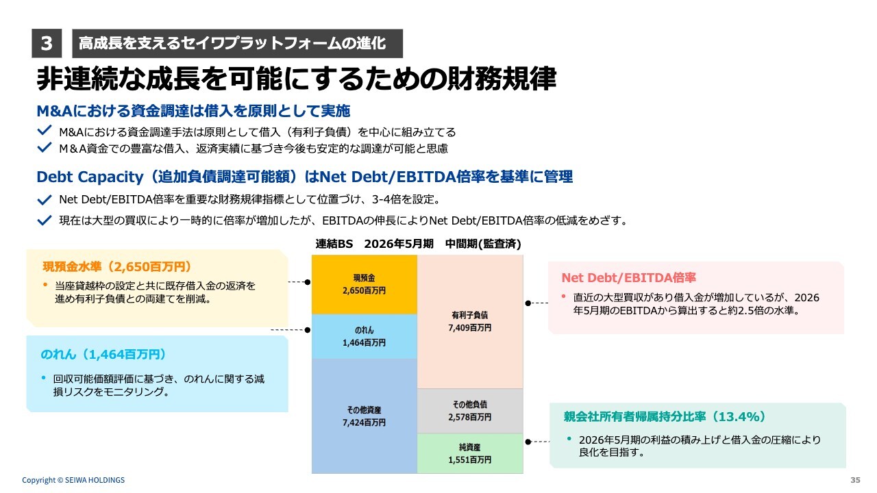 3 ⾼成⻑を⽀えるセイワプラットフォームの進化|⾮連続な成⻑を可能にするための財務規律