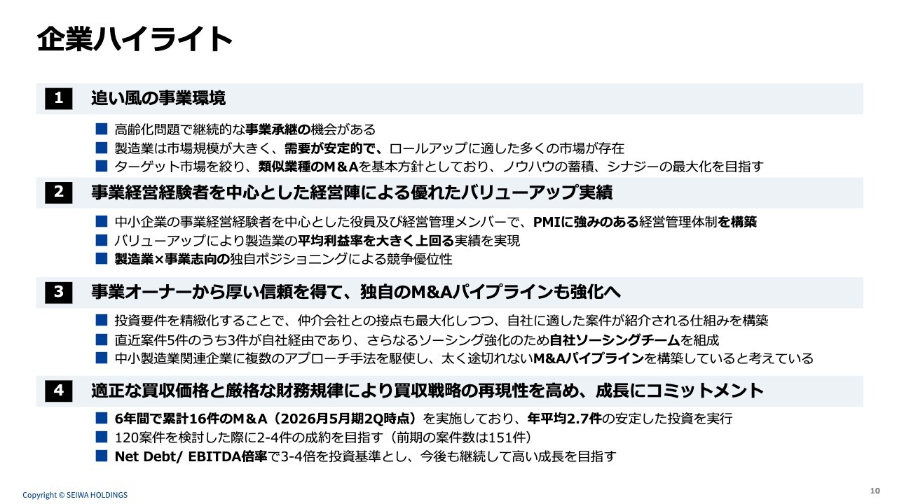 セイワHD上場会見、製造業特化型の事業承継プラットフォーマー 事業志向のハンズオンで収益性向上へ
