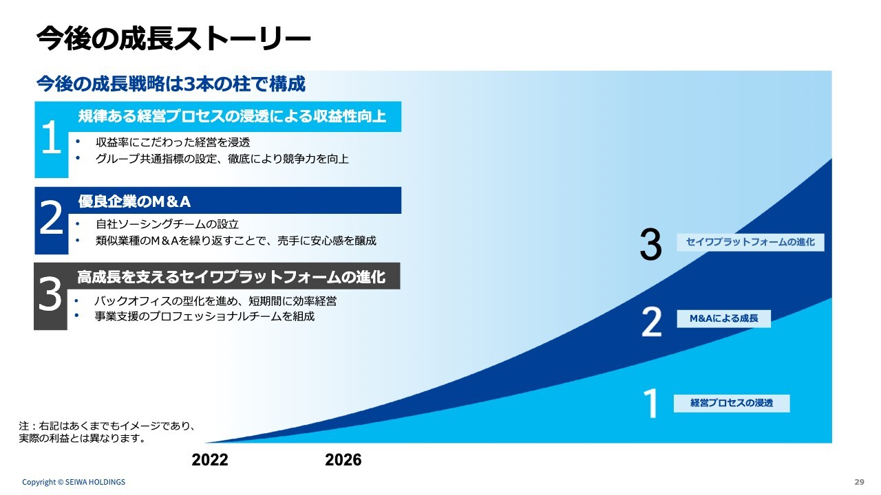 2点目は、非常に優れた仲介会社からの案件に加え、自社ソーシングで新たな種をしっかりとまくことで、今後も継続的に高い成果を上げられるM&A体制を構築していきます。