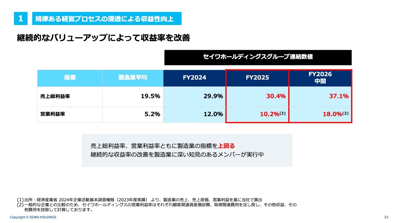 1 規律ある経営プロセスの浸透による収益性向上|継続的なバリューアップによって収益率を改善