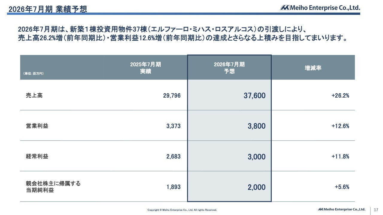 2026年7月期 業績予想