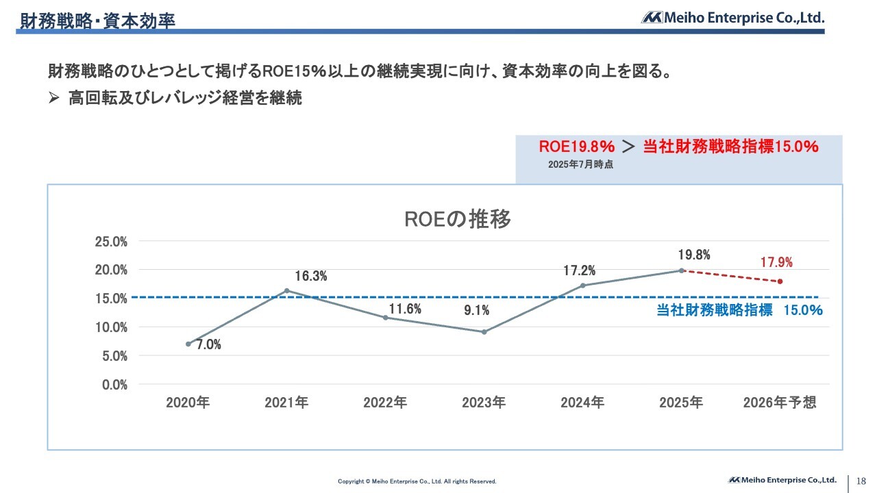 ROEについては、当社の財務戦略指標である15パーセントを超え、17.9パーセントで着地する見込みです。