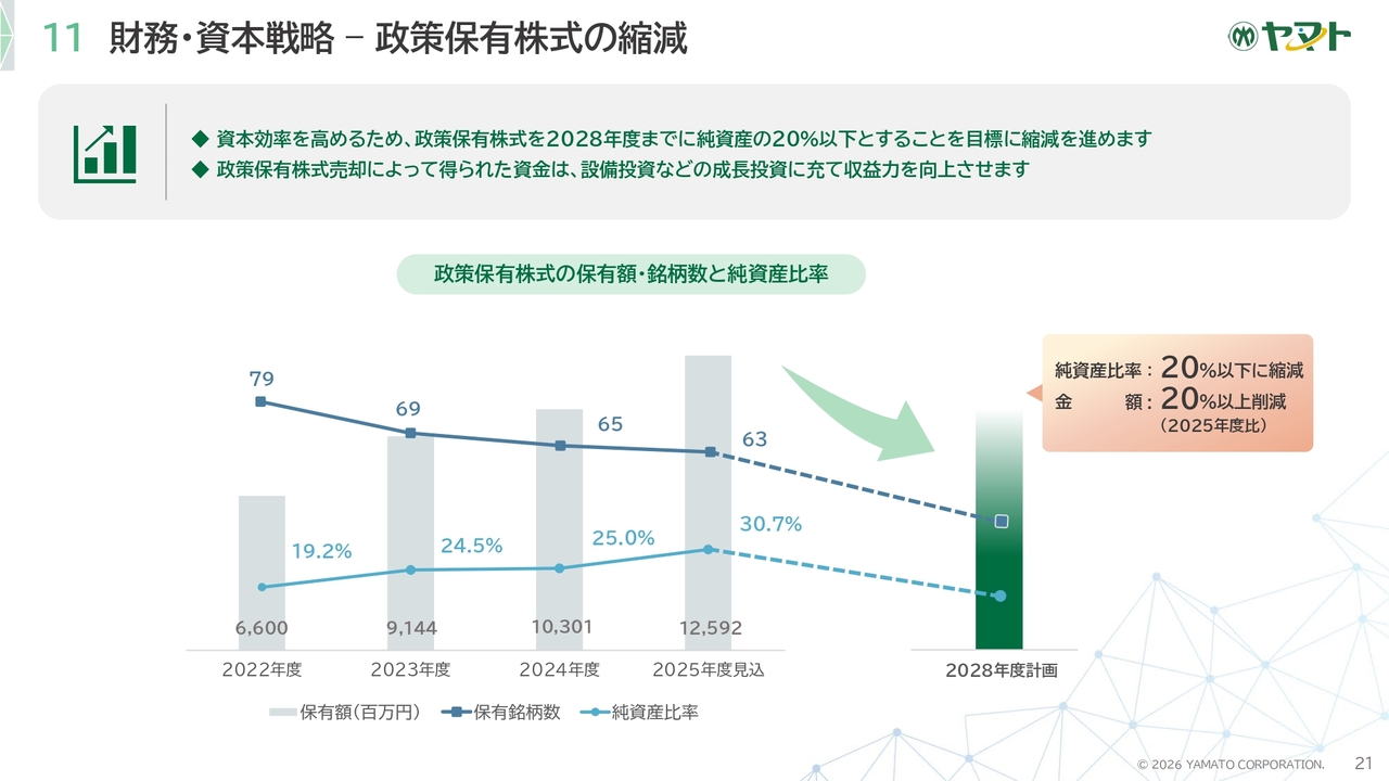 2028年度の計画では、2025年度比で保有額を20パーセント以上削減する計画です。