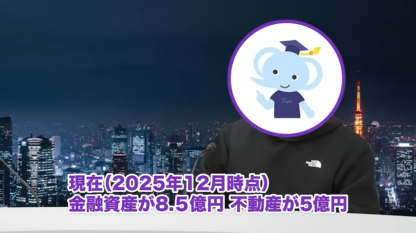 たぱぞう:現在、金融資産が8億5,000万円、不動産が5億円くらいです。つい先月までは不動産が6億円ほどあったのですが、一部を売却しており、総額では13億5,000万円ほどです。借入は5億円あります。初任給20数万円の中から生活費を除いたお金を投資に回しました。