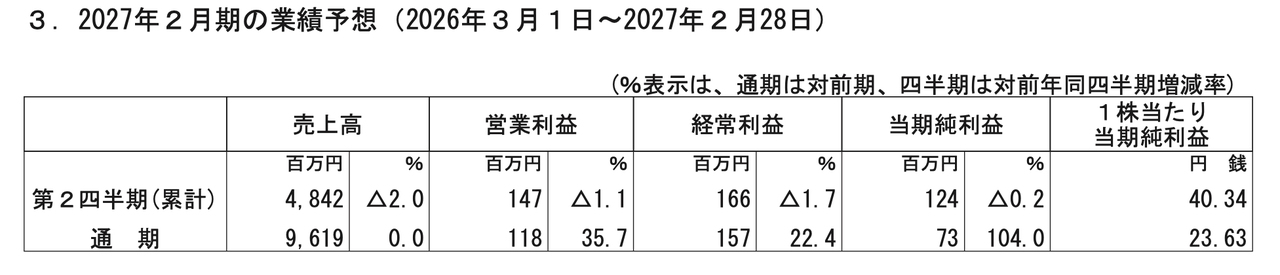 3.2027年2月期の業績予想(2026年3月1日〜2027年2月28日)