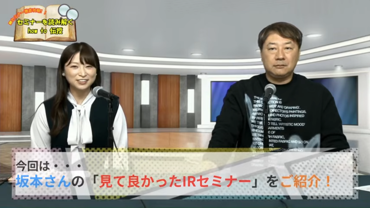 荒井:前回は、このような話や考え方をお聞きしました。今回は、前回お話しいただいたポイントについて、実際に坂本さんが視聴して良かったと感じるIRセミナーの動画を一緒に見ながら解説いただきます。
