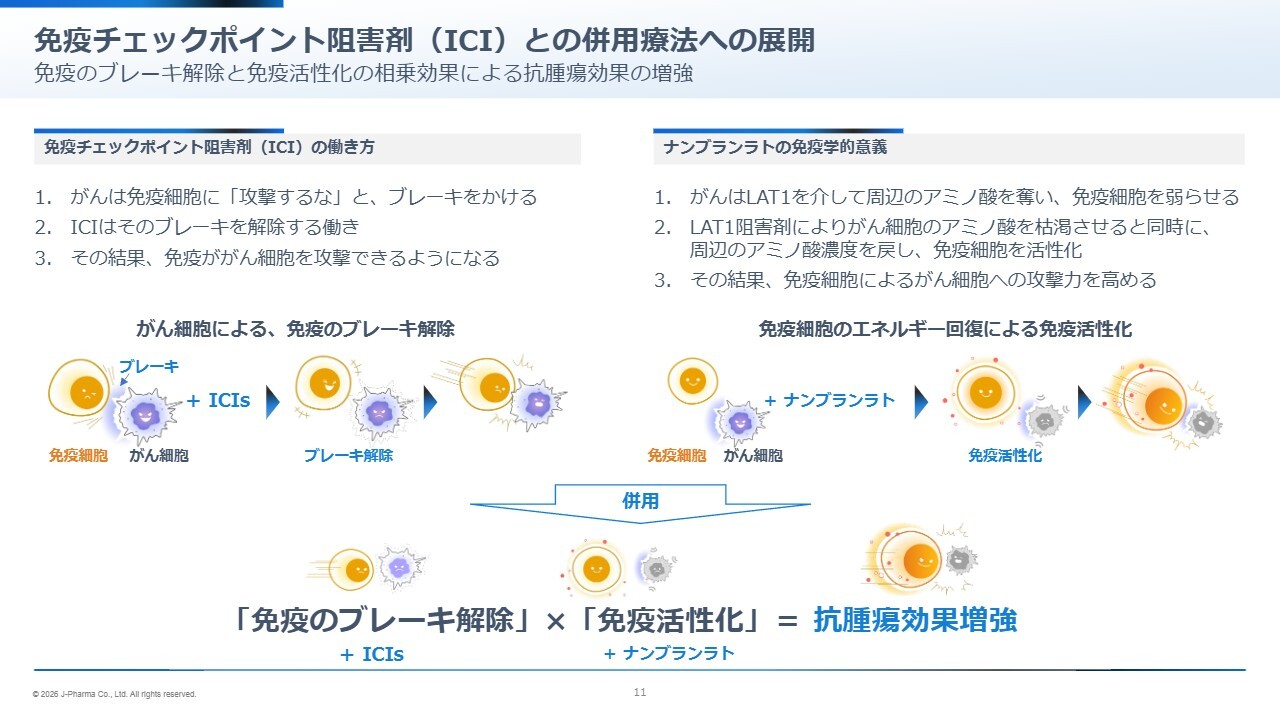 そのため、私どもはグローバルフェーズ3と日本での免疫チェックポイント阻害剤併用療法について、ライセンス候補先とともに見ていきたいと考えています。