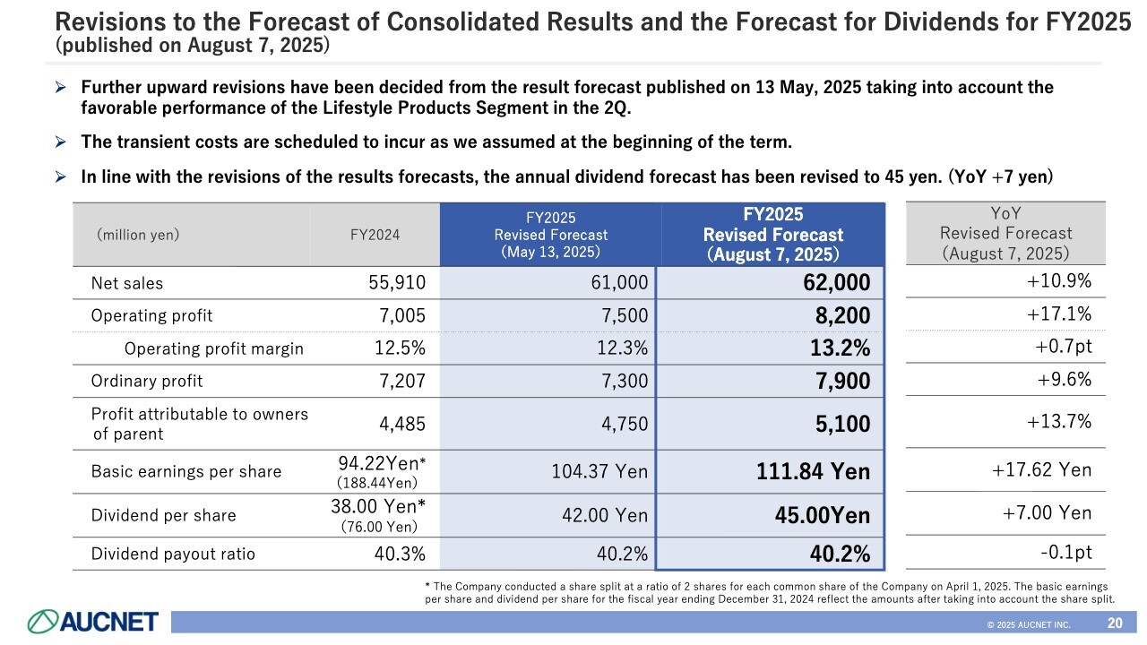 Revisions to the Forecast of Consolidated Results and the Forecast for Dividends for FY2025 (published on August 7, 2025)