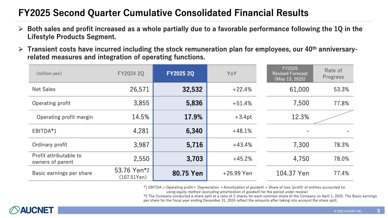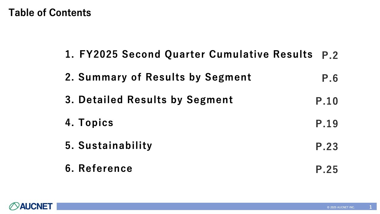 That concludes our explanation of the first-half financial results. This fiscal year marks the 40th anniversary of our founding, and we are pleased to have delivered solid results for the first half of FY2025. Building on this momentum, we intend to continue driving business growth in the second half. We appreciate your continued support.