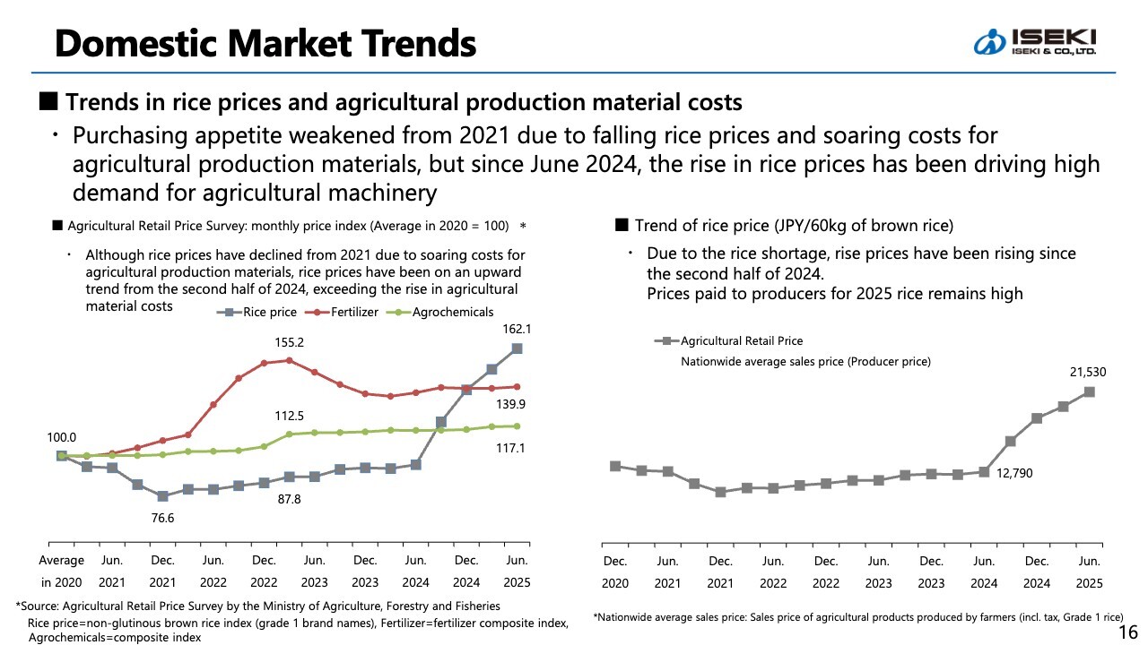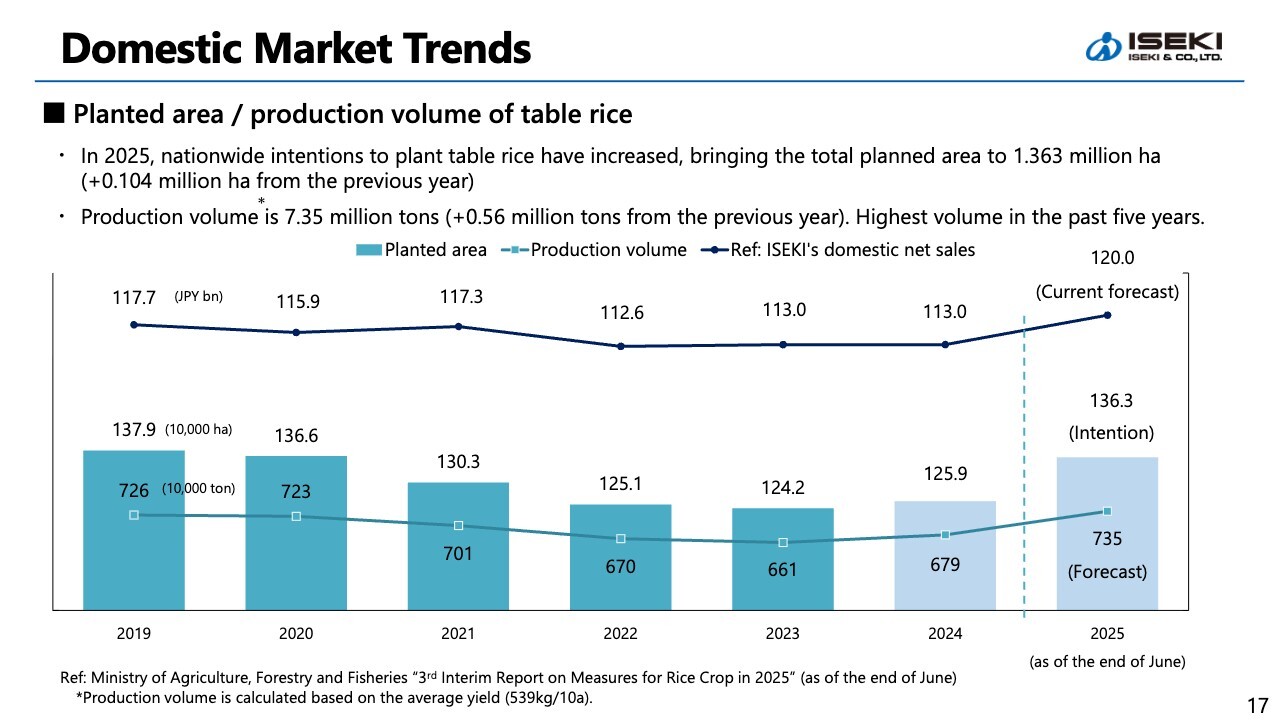 Our domestic net sales are expected to increase for the full year of FY12/2025, supported by improved purchasing appetite among farmers driven by rising rice prices and improved market conditions.