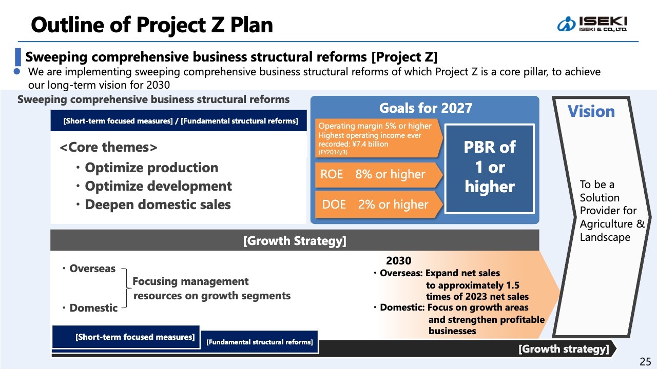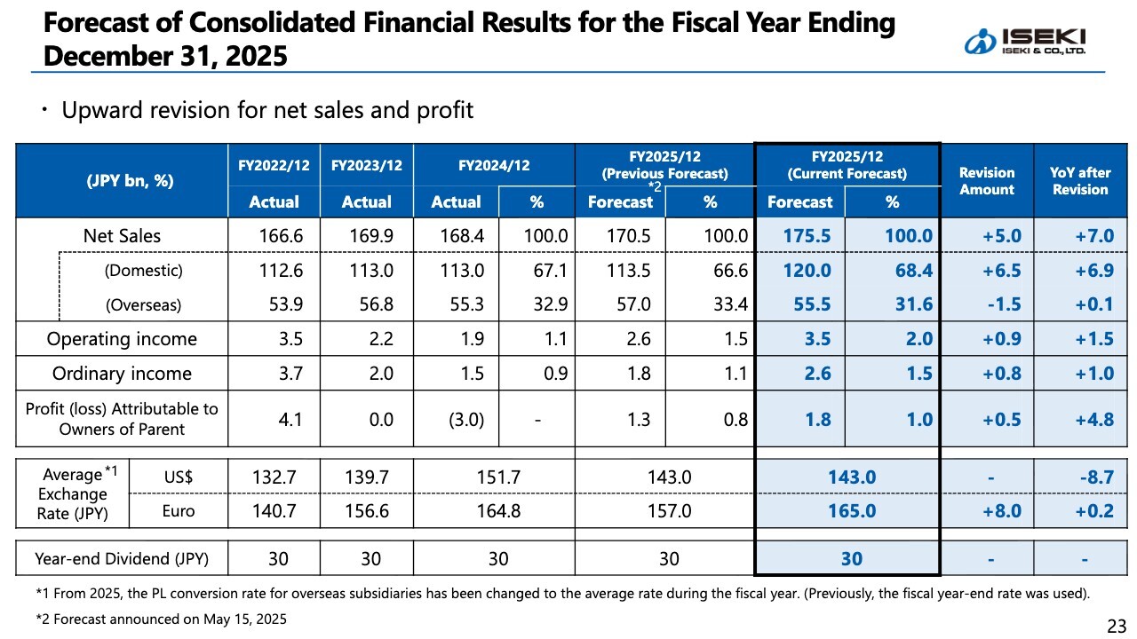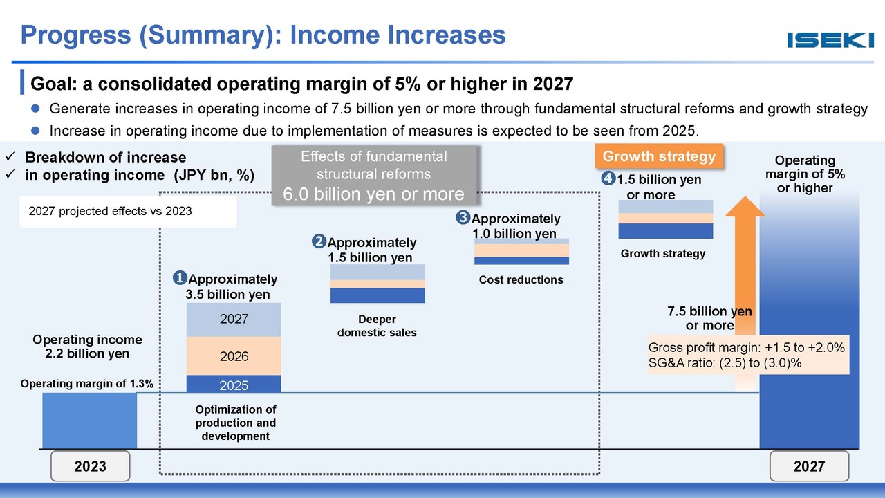 Finally, regarding “Deepen domestic sales,” this fiscal year marks the launch of ISEKI Japan, and as mentioned earlier, initial costs will be high, including merger-related expenses.