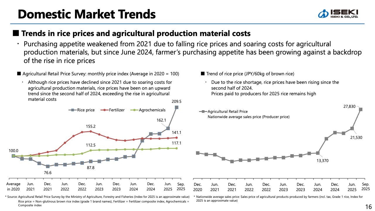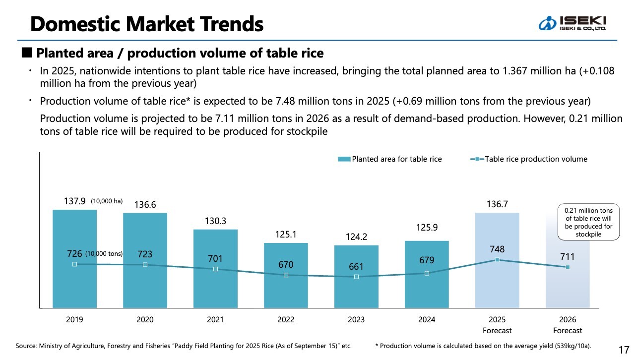 That said, new rice is naturally of higher quality, and there is solid demand for it, so I am not concerned about a slowdown in new rice sales. Accordingly, we believe farmers’ investment appetite remains strong.