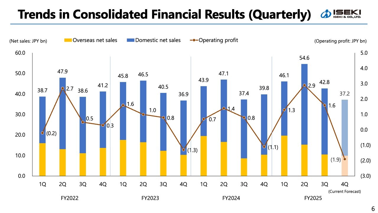 However, our overseas ratio has increased in recent years. Sales are recorded from 1Q in Europe, which has enabled us to generate operating profit in 1Q. Nevertheless, the seasonal trend in 4Q has remained unchanged.