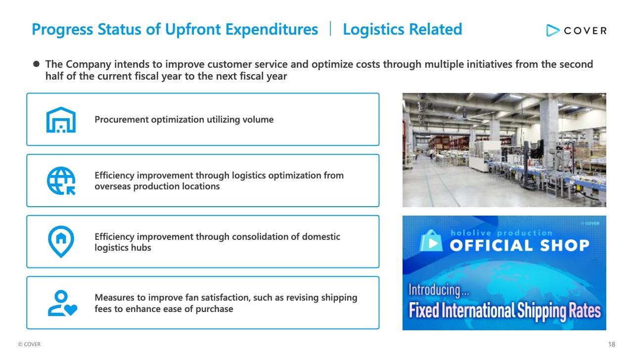 Under “Measures to improve fan satisfaction, such as revising shipping fees to enhance ease of purchase,” we are mitigating cost impacts through the aforementioned measures, while standardizing international shipping rates for overseas customers, enhancing the convenience of our global e-commerce services. In addition, we plan to implement numerous measures gradually to further improve our e-commerce services.