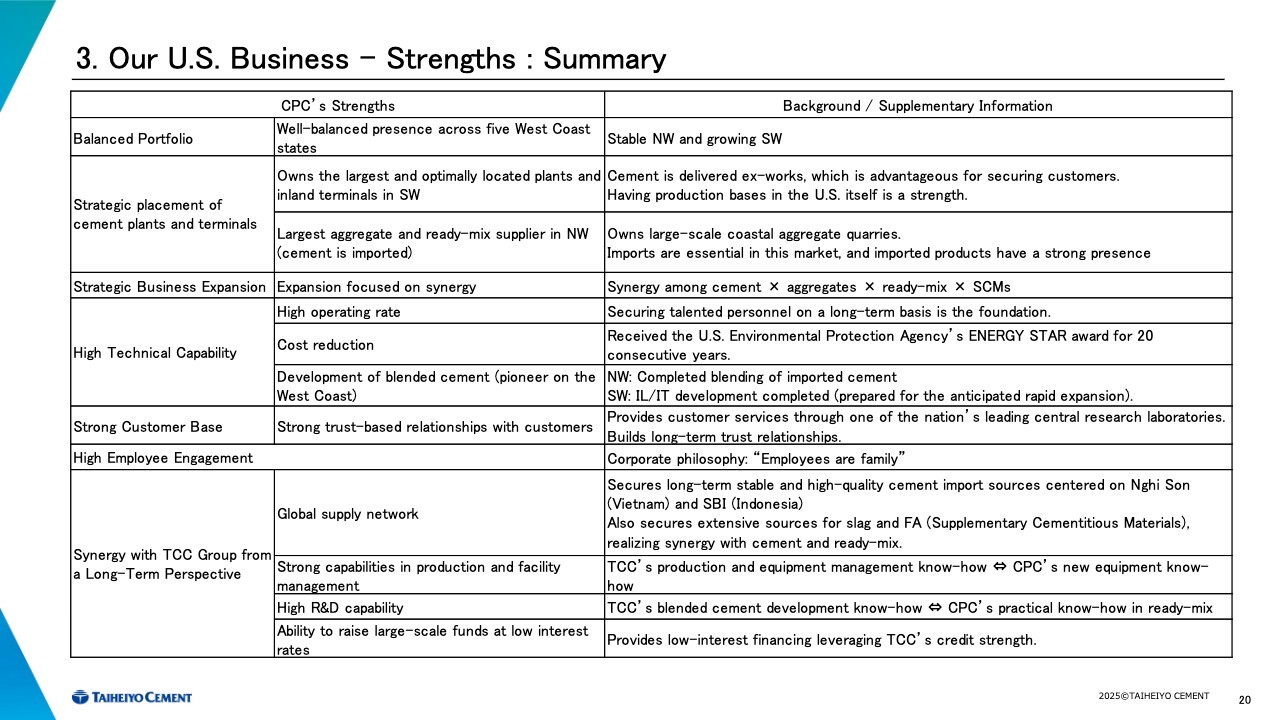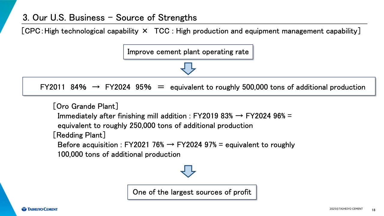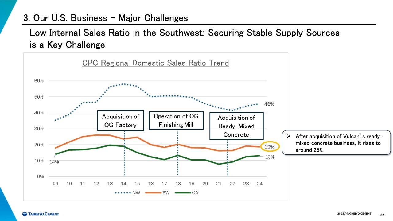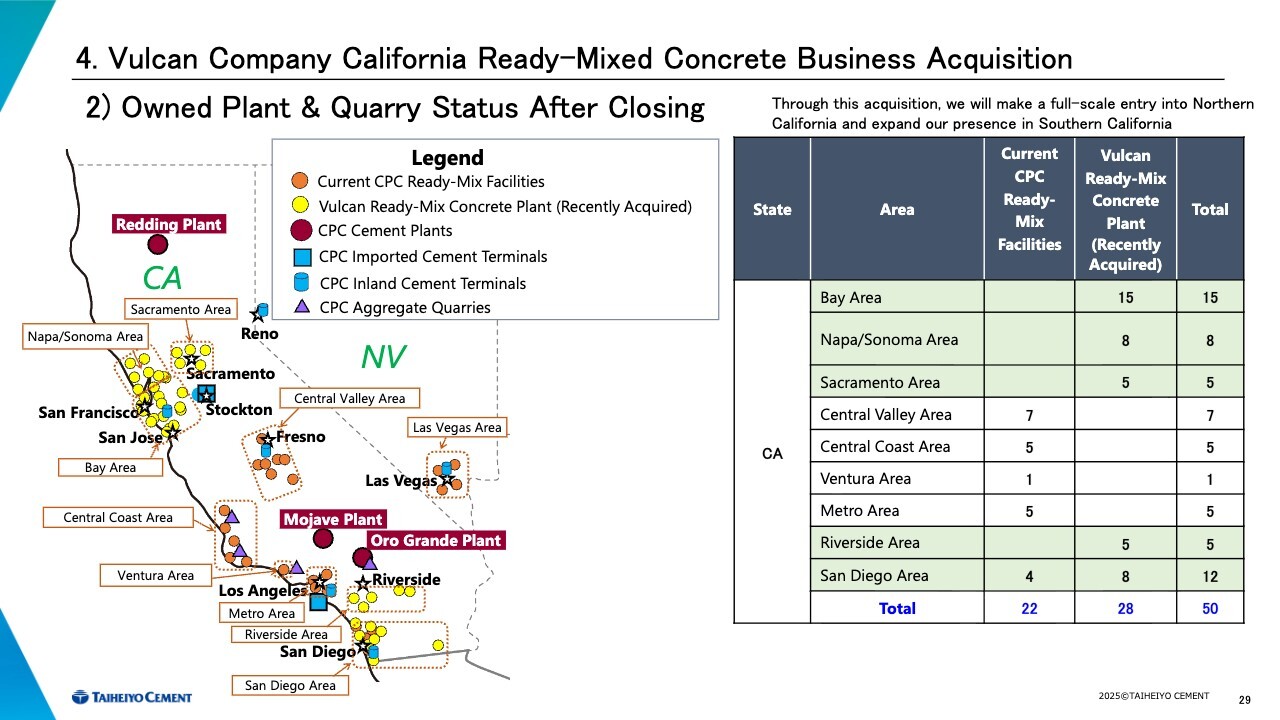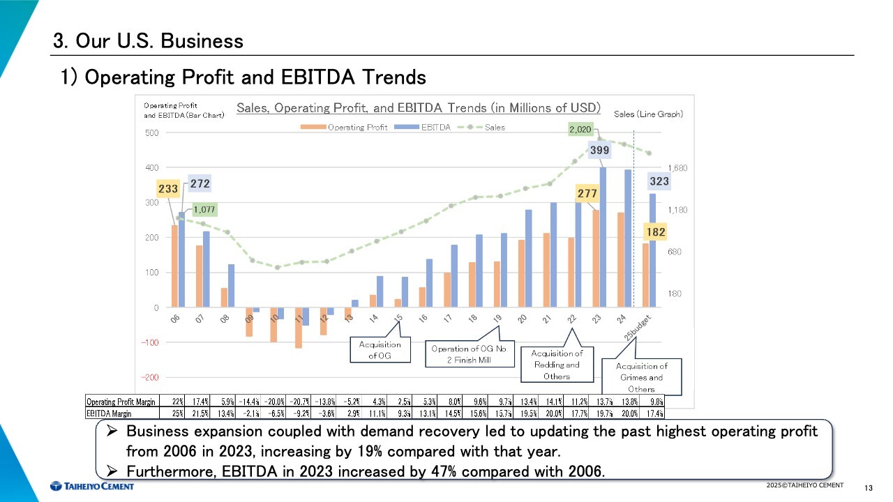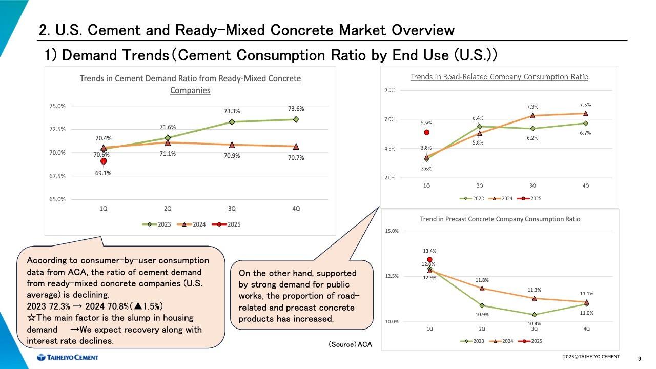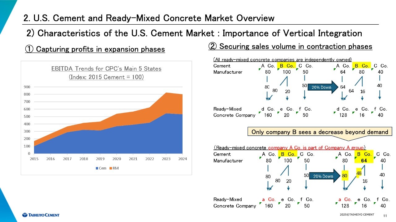 The second point is how we strategically approach the U.S. market. Third, the acquisition benefits of the ready-mixed concrete business acquired from Vulcan Materials Company. I will discuss these topics today.