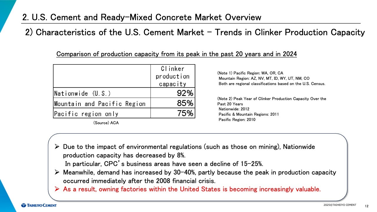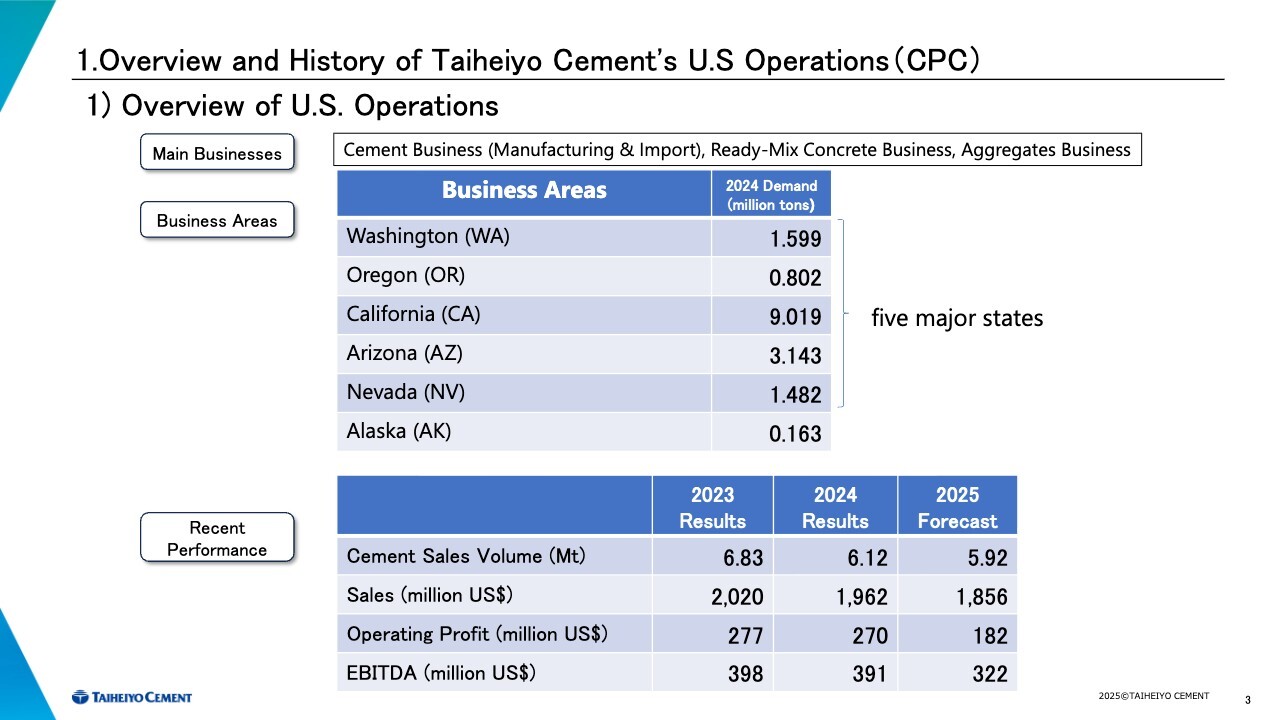 1. Overview and History of Taiheiyo Cement’s U.S Operations (CPC): 1) Overview of U.S. Operations