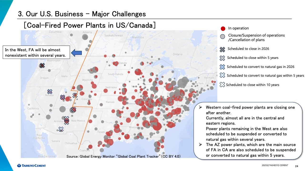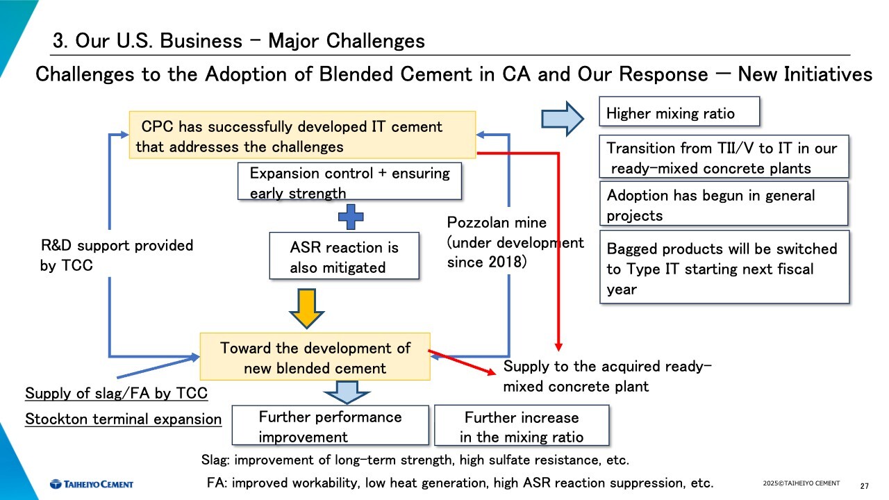 We have taken a long-term approach to this issue. We obtained permits for natural volcanic ash mines since around 2018 and last year opened the Gem Hill pozzolan mine, located near the Mojave Plant. The pozzolan from this mine is sufficient to produce Type IT cement.