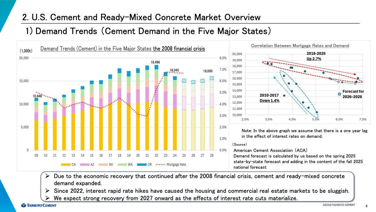 Furthermore, the projections from the American Cement Association (ACA, formerly known as PCA) for the period from 2026 to 2028 generally align with this trend line. Consequently, we believe demand will reach this level if interest rates decline.